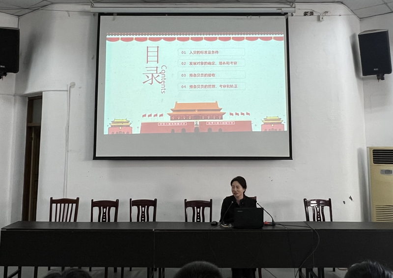朱锦书记结合自身多年以来的党务工作经验,围绕入党动机、入党申请书的撰写要求、党员发展程序三个方面进行阐述。大一新生,是入党的启蒙阶段,她重点围绕端正入党动机、如何写入党申请书方面进行了细致、详实的解读,她还讲到,大学生争取入党首先要认真学习马克思列宁主义、毛泽东思想、邓小平理论、“三个代表”重要思想、科学发展观、习近平新时代中国特色社会主义思想的基本理论和党的各项方针政策,树立共产主义远大理想和坚定中国特色社会主义信念,其次要通过实践,理论与实践相结合,深化对党的认识,要在思想上入党,行动上入党,不断端正入党动机。在党员发展程序环节,她从申请入党、入党积极分子的确定和培养教育、发展对象的确定和考察、预备党员的接收、预备党员的教育考察和转正五个方面,对发展党员的“5个阶段”多个步骤进行了阐述,并对整个发展党员流程中的注意事项进行具体说明。最后,朱书记还指出,从申请人到正式党员是一条不平坦的道路,需要坚定的信念、坚强的意志、信心和勇气,关键需要我们自身不断的努力。
