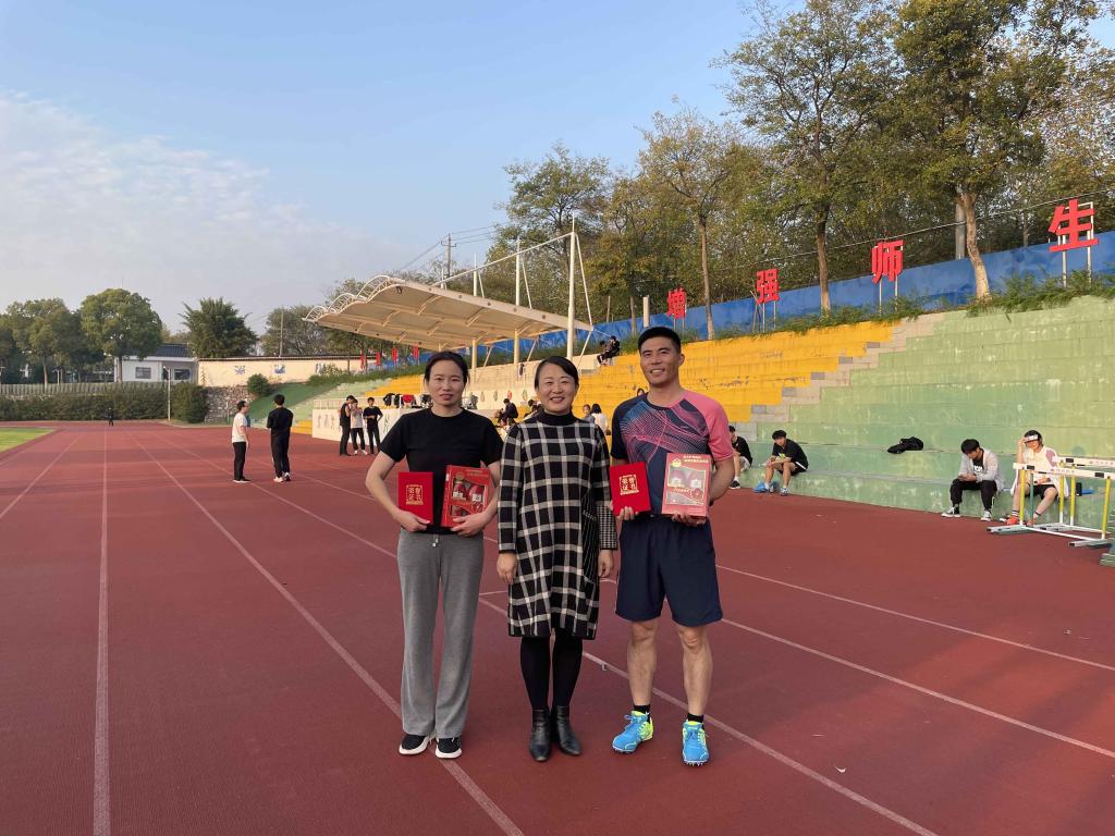 本次选拔赛主要围绕教职工100米、200米和4*100米混合接力赛三个项目进行选拔,选拔赛分男子组和女子组两个组别,各设一等奖1名、二等奖2名,三等奖3名,鼓励奖若干名。校区全体教职员工积极参加,经过激烈的角逐,杨红进、朱锦分获男子组和女子组第一名,校区领导班子分别为获得选手颁奖。