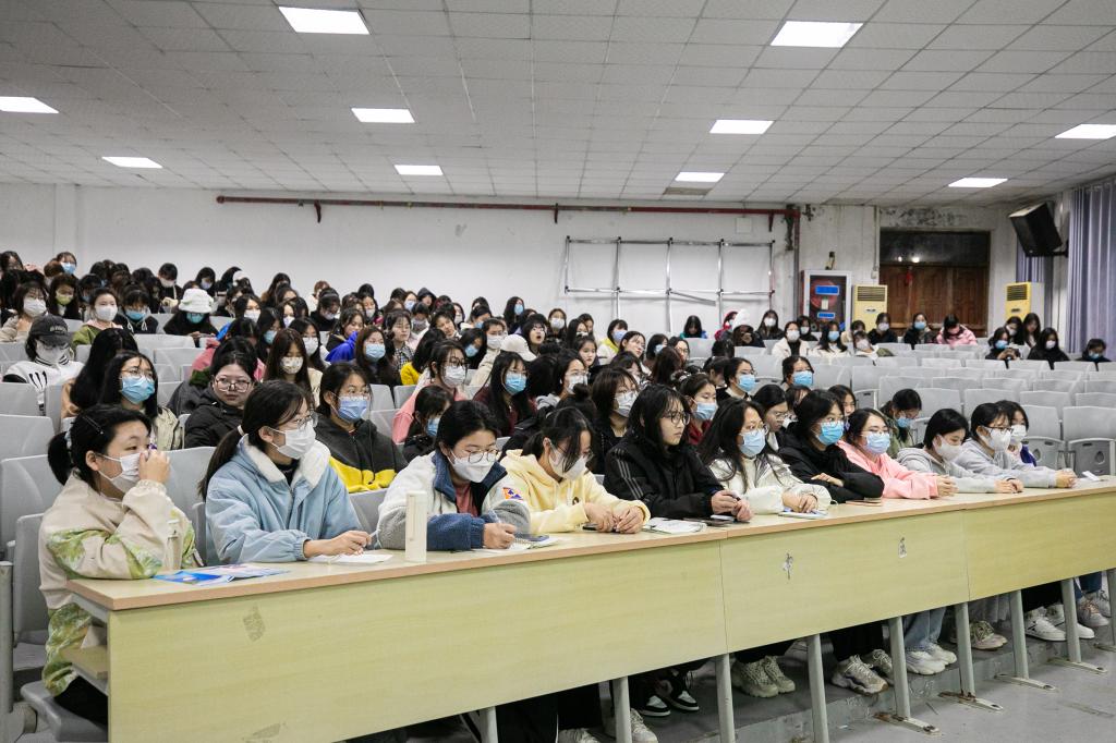 在茅山校区报告厅,沈云霞医生以“关爱自我,绽放美丽”为主题,通过图文结合的方式从女性生殖解剖,女性性心理,婚前性行为,人身安全小常识等方面展开了讲解,深入浅出、通俗易懂、亲切细致地为同学们普及健康知识。沈医生用大量鲜活的例子向现场同学们讲述了女性身心健康的重要性,提醒大家要密切关注自我身体状况,养成良好的生活习惯及健康的饮食卫生习惯,做到科学防护,远离疾病困扰;并指出同学们与异性交往时应该理性,注意把握分寸。