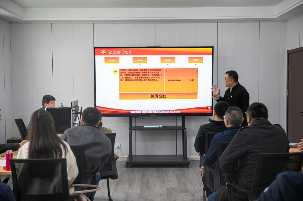竞赛分为4小组,现场设置了个人必答题、集体抢答题环节,题目来自党的二十大报告、党章、《党的二十大报告辅导读本》《党的二十大报告学习辅导百问》等。比赛现场,各组比知识、比速度,你追我赶,沉着应对,展现了选手们积极进取、勇于拼搏的团队协作精神。刚刚参加工作的辅导员戴茜说到,我将深入学习贯彻党的二十大精神,始终坚定“为党育人为国育才”的理想信念,以奋发有为的精神状态,继续将学生工作做实做细,为培养德智体美劳全面发展的社会主义合格建设者和接班人而努力奋斗。
