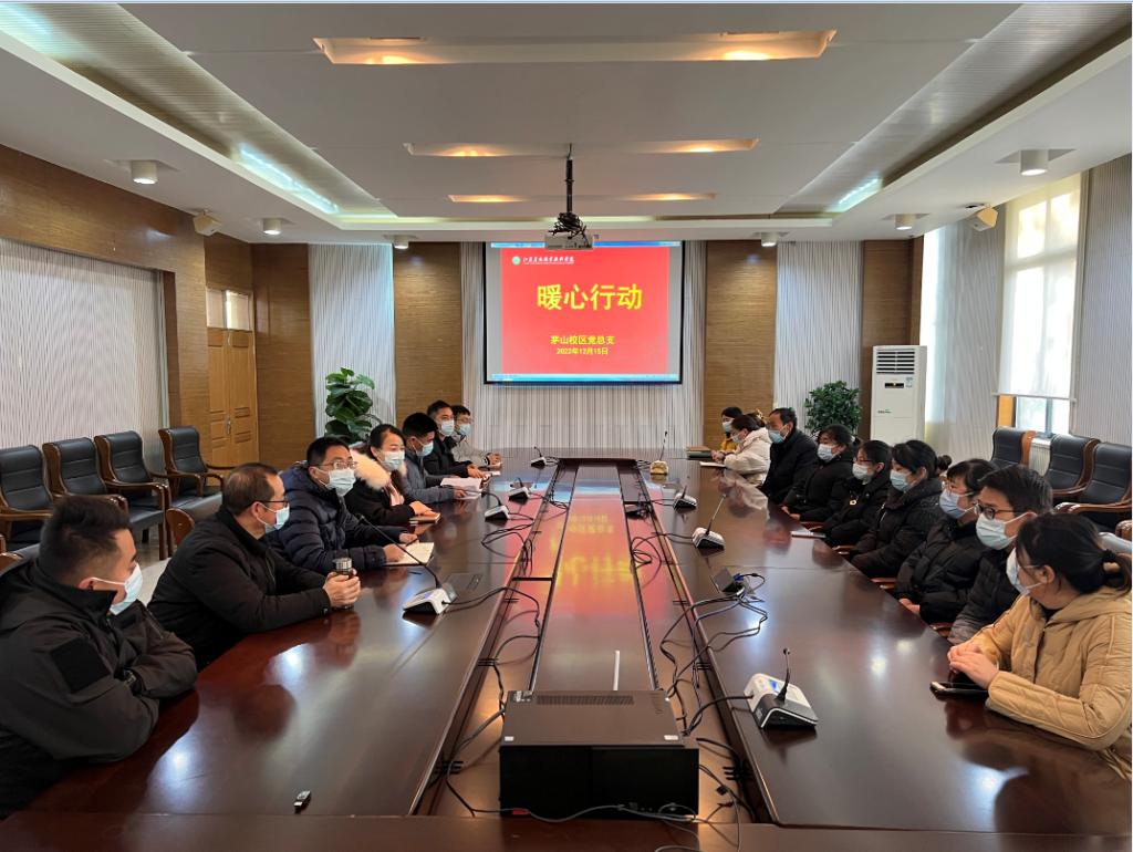 12月15日,茅山校区党总支携校区分工会开展暖心行动,通过座谈会、走访慰问的方式慰问校区后勤宿管、保安等一线工作人员,给他们送去校区的关心关怀。茅山校区党政领导班子、分工会委员参加了慰问活动。