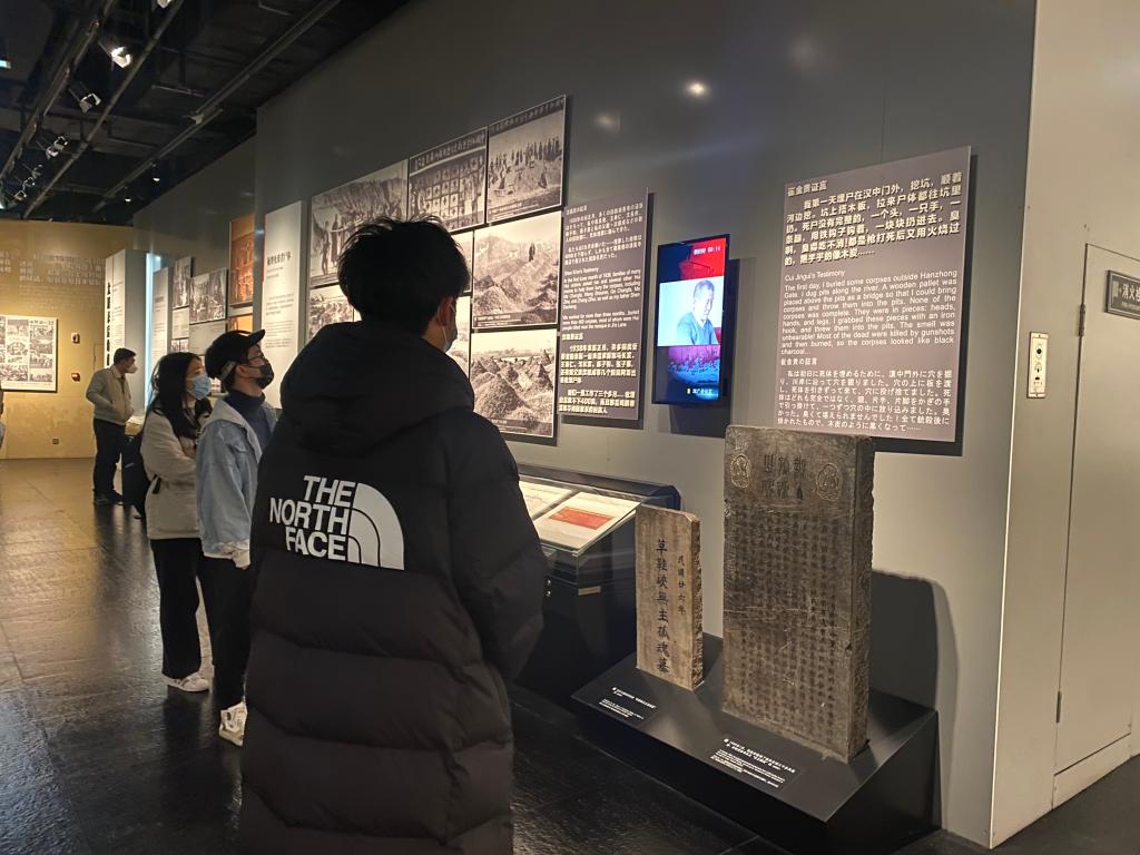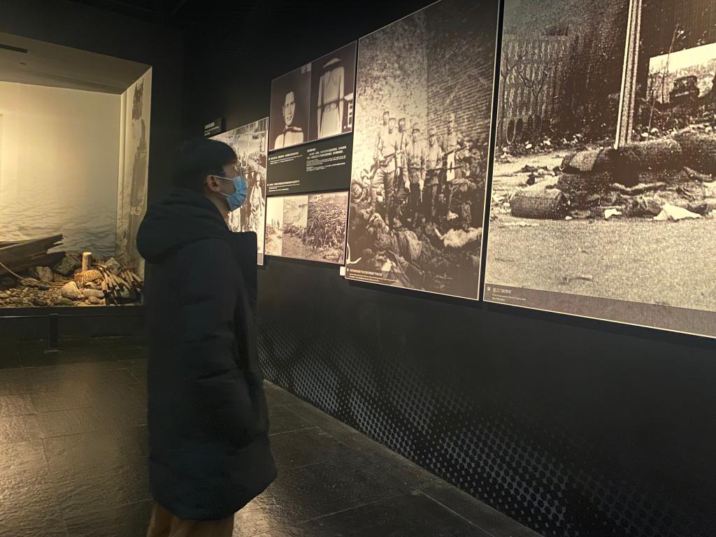 在侵华日军南京大屠杀遇难同胞纪念馆,实践团成员们跟随讲解员的脚步,参观了史料馆。通过各类物证、史料、图片以及幸存者的采访视频,师生们回顾着那段惨绝人寰的历史,心情凝重。在祭坛处,师生们井然有序地献上手中的白菊,深深地鞠躬,以表达对死难者的敬重与哀悼。