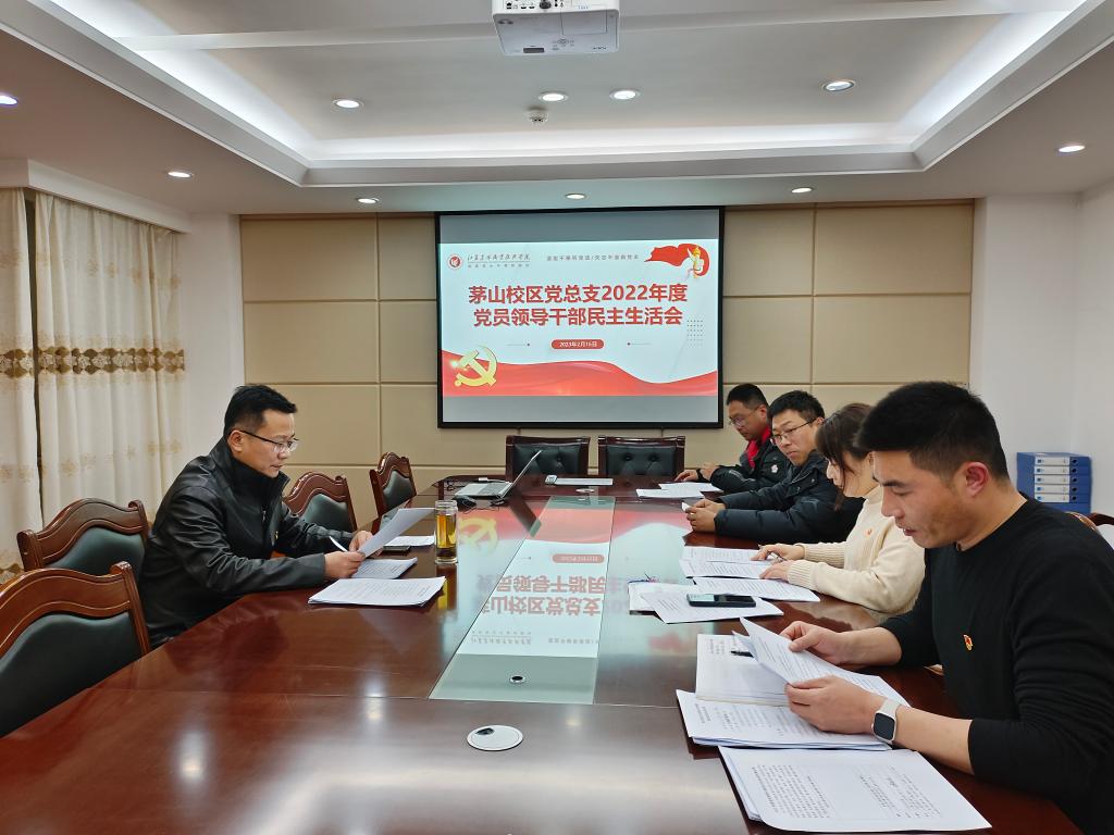 2月15日晚8时,茅山校区党总支2022年度党员领导干部民主生活会在学院综合楼七楼会议室召开,学院党委委员、副院长毕德全同志到会指导并点评,茅山校区党总支负责人董慧同志主持会议。