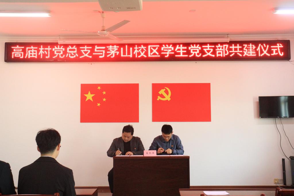 为提升队伍能力,助力乡村振兴。3月10日上午,茅山校区学生党支部、高庙村党总支在高庙村党群服务中心开展结对共建活动。全体党员参观了高庙村党建活动室、举行了结对共建仪式、开展了“共栽同心树、共植强国林”主题活动。