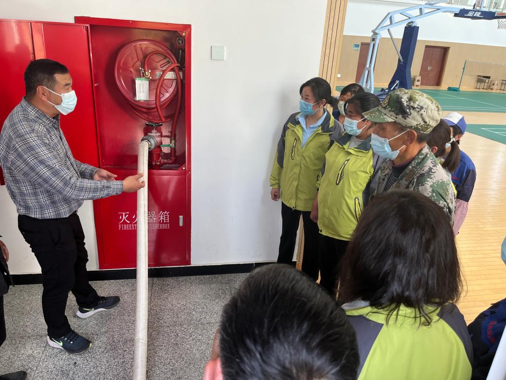 校区安保室王敬和干事跟大家详细讲解了突发火灾的应对措施,演示了灭火器、消火栓的使用方法。在王干事的指导下,大家通过现场演习,按照“上下颠倒摇晃、拔掉铅封、拉出保险销、保持安全距离、对准火焰根部喷射”的步骤,熟练掌握了灭火器的使用的方法。