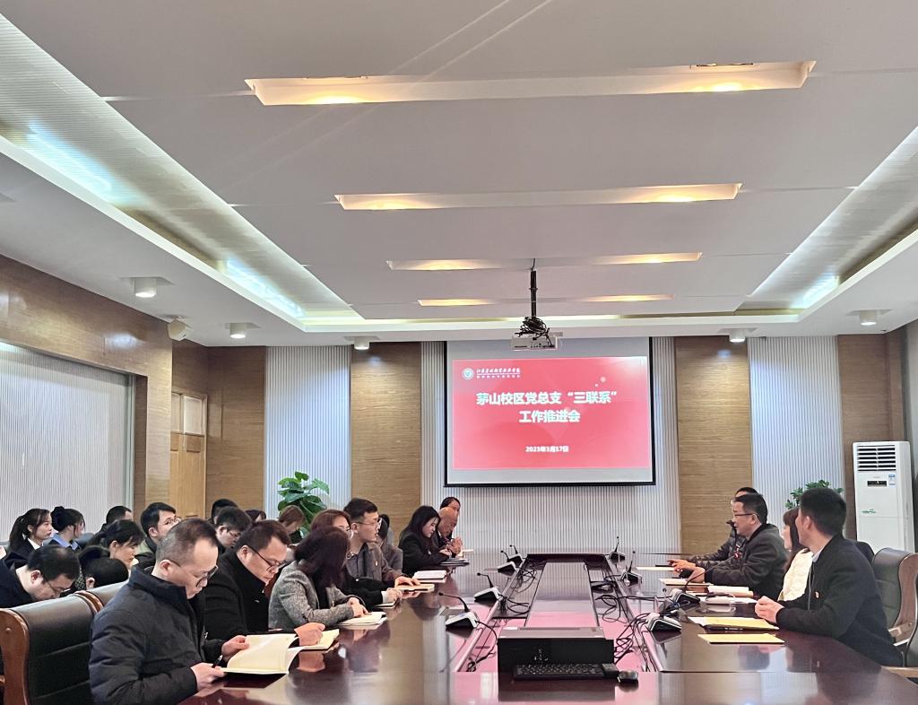 3月17日下午,茅山校区党总支“三联系”工作推进会在校区图书馆会议室举行。学院党委委员、副院长毕德全同志,茅山校区党总支领导班子、全体党员教职工,以及学生代表参加了会议。会议由茅山校区党总支负责人董慧同志主持。