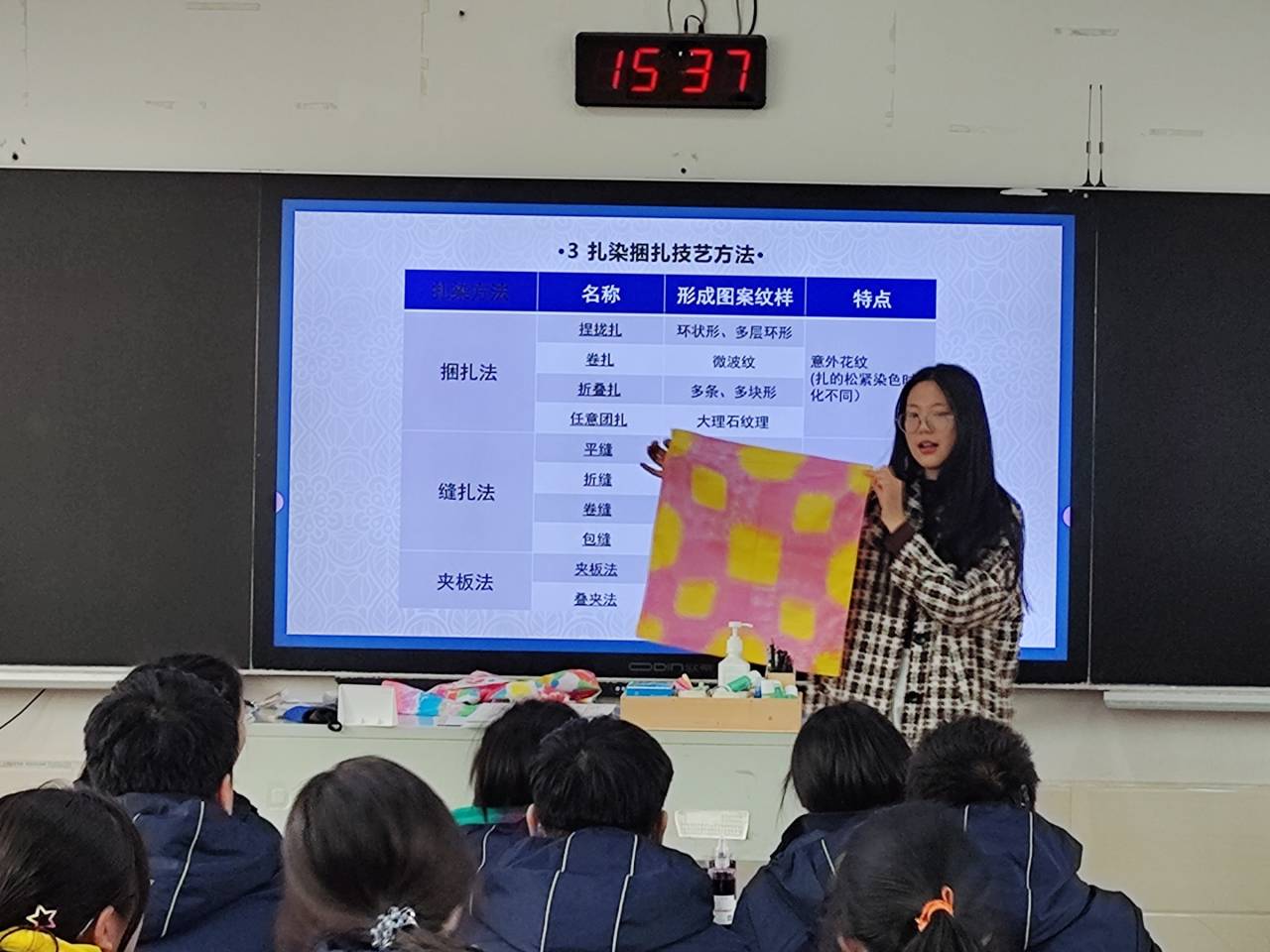 为进一步推进非物质文化遗产的传承与发展, 让学生感受非遗文化的魅力,3月29日,江苏农林职业技术学院茅山校区六点半大美课堂讲师段玉洁走进江苏省句容高级中学开展“非遗文化进课堂——由“染”而生,妙“布”可言”主题活动,省句中50余名学生参加了此次社团活动。