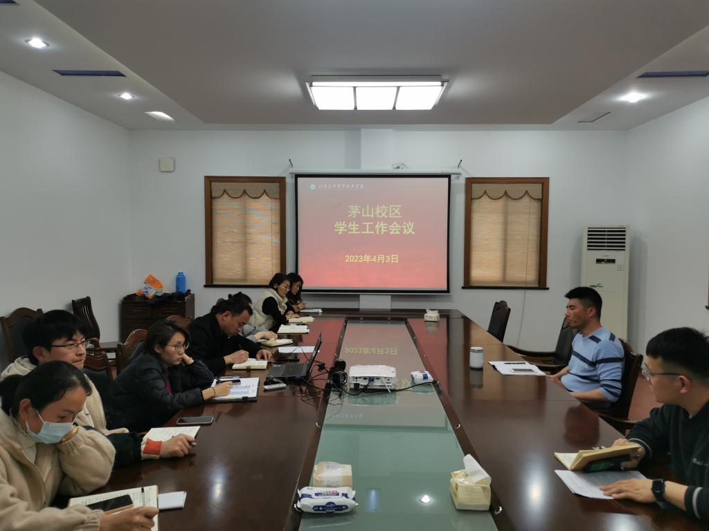 4月3日,茅山校区在行政楼会议室召开学生工作例会。校区党总支副书记杨红进出席并主持会议,全体辅导员(班主任)参加了会议。
