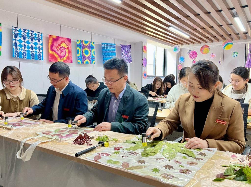 活动上,校区党总支负责人董慧详细介绍了“六点半大美课堂”的建设方案和教学安排。随后,学院党委委员、副院长毕德全为“六点半大美课堂”的讲师颁发了聘书,与会领导为“定格春光 最美校园”摄影比赛获奖的同学颁发证书。最后,毕院长发表讲话,他提出美学教育应遵循王国维在《人间词话》谈到的治学经验三个境界,并从注重美育浸润、强化课程创新及增强服务渠道三个方面对“六点半大美课堂”提出要求和期许。他表示,茅山校区开展“六点半大美课堂”,探索艺术实践活动形式,创新开展向美而行的展示交流活动,提高了学生的审美和人文素养,增强了美育工作的实效。仪式结束后,毕院长一行观摩并体验了“植物拓印”课堂现场教学。