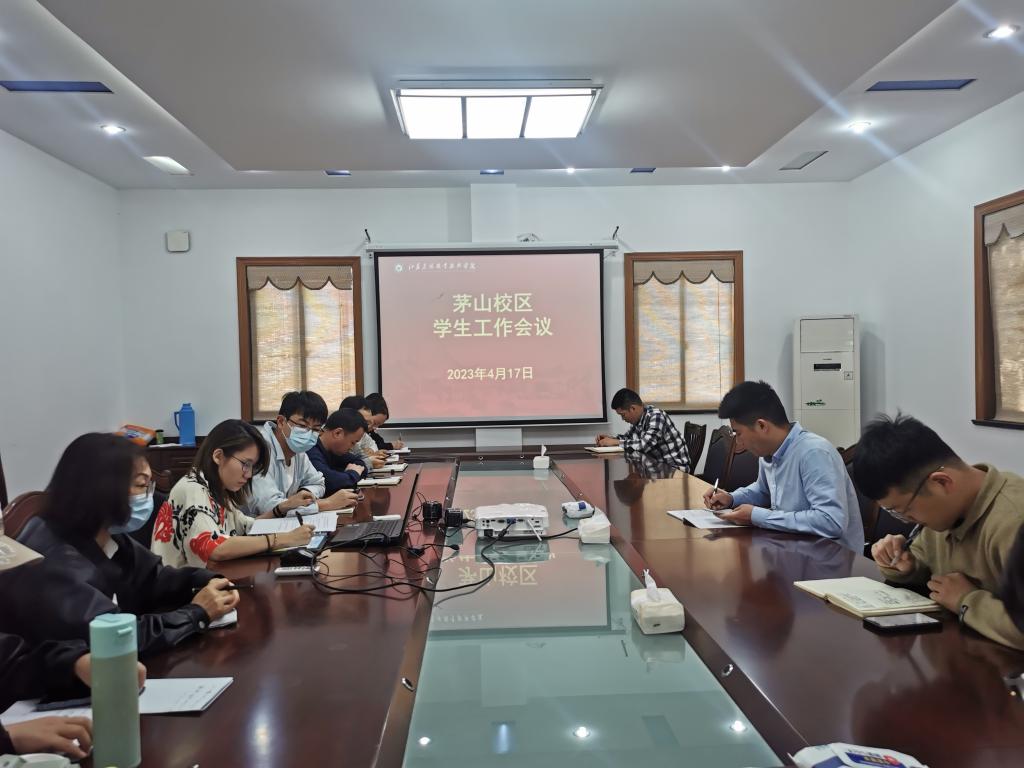 4月17日,茅山校区在行政楼会议室召开学生工作例会。校区党总支副书记杨红进出席并主持会议,全体辅导员(班主任)参加了会议。