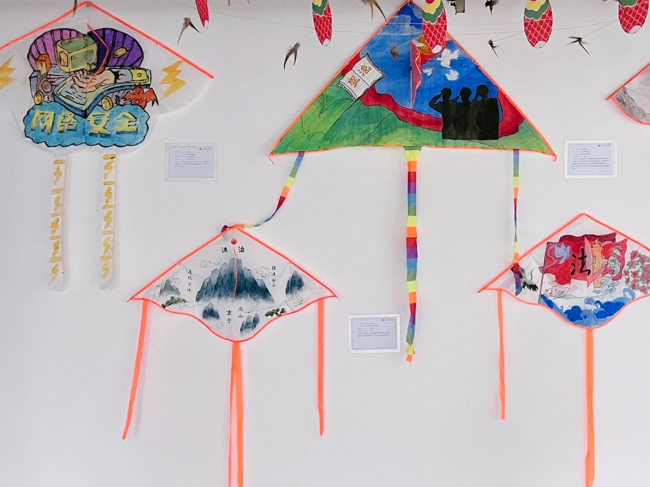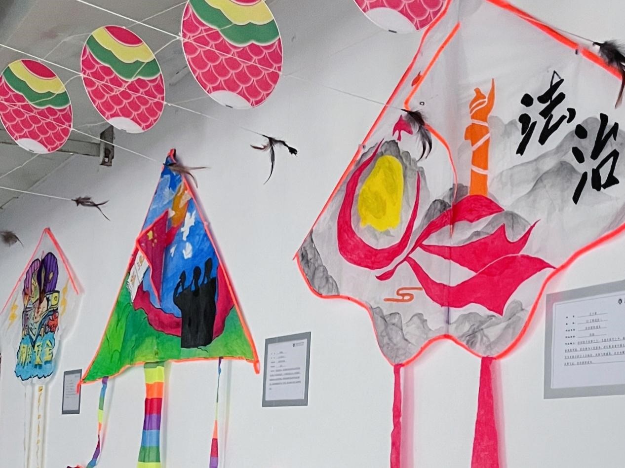 活动中,老师带领同学们探索非遗文化——风筝制作的历史和技艺,并以“非遗+法治”的模式,让同学们在风筝制作中接受法治熏陶,感受别样法治春光。