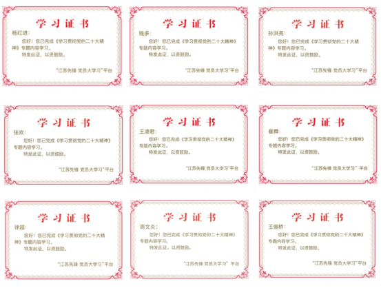 为深入学习贯彻党的二十大精神,引导党员干部把对“两个确立”的决定性意义的深刻领悟转化为做到“两个维护”的高度自觉,切实担负起“走在前、挑大梁、多作贡献”的重大责任,茅山校区党总支积极组织全体党员教师参与由省委组织部线上推出的“党员大学习”之“学习贯彻党的二十大精神”专题, 截止5月8日,茅山校区党总支33名党员教师已全部完成学习并获得“学习证书”。
