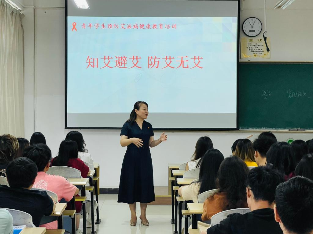 培训会上,董慧老师首先就学院自2016年以来所开展青春防艾项目取得的成效进行了介绍;随后,她详细讲解了艾滋病相关概念、危害程度、流行趋势、传播途径、临床症状、预防措施等,并通过案例分析、展示互动等形式,强调了“每个人是自己健康第一责任人”的观点,增强大家的健康理念,提高大家杜绝毒品与减少易传播艾滋病高危行为的意识。