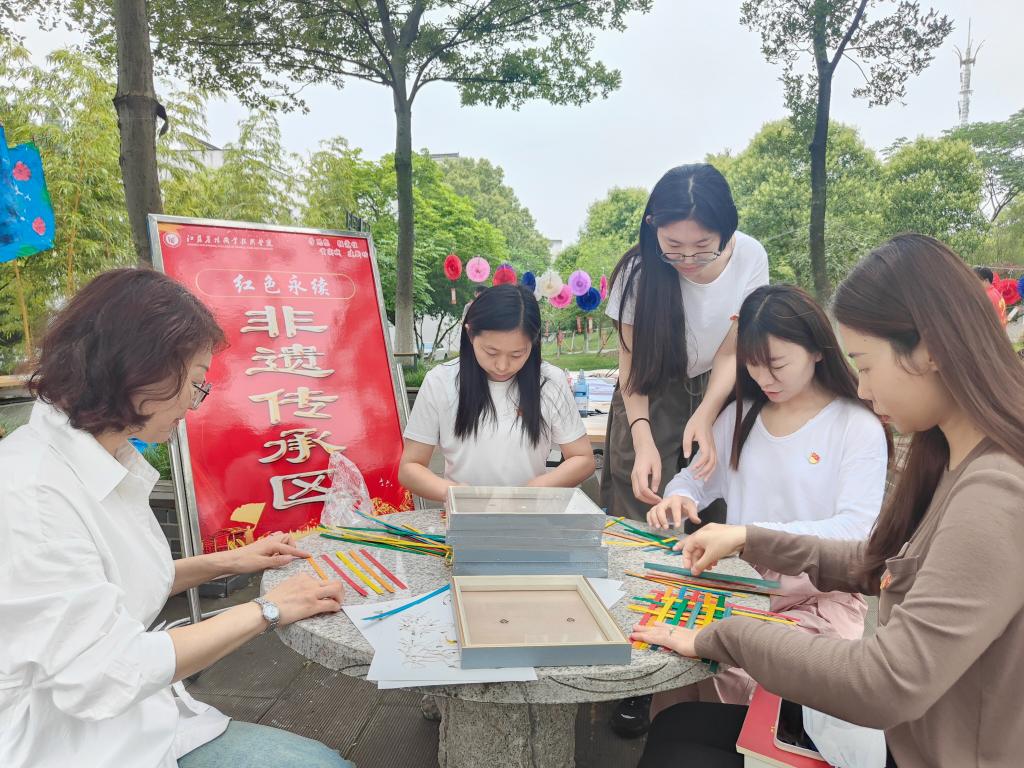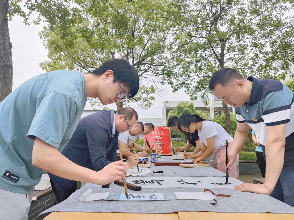 活动现场共分为四个区域,分别是书写红心·书法体验区,党员教师展纸挥毫,在笔墨丹青中,以笔墨丹青书写对学习贯彻习近平新时代中国特色社会主义思想的理解和领悟;红色永续·非遗传承区,党员教师体验扎染、团扇等非遗项目,沉浸式感受中国传统文化的魅力;知党爱党·知识充电区,“你一题、他一题”,党员教师积极踊跃参与答题,让理论知识入脑入心;红心向党·打卡积点区,党员教师满心欢喜在活动主题大喷前纷纷打卡留念,兑换奖品。