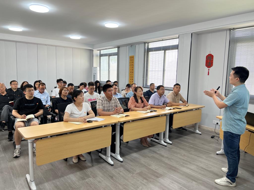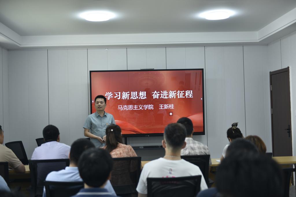 为持续推动习近平新时代中国特色社会主义思想进校园、进课堂、进头脑,以党内教育引导和带动全院师生的学习,用党的创新理论指导教育教学、指导师生成长,6月9日下午,茅山校区党总支在2号学生宿舍楼多功能会议室组织开展理论成果大宣讲,宣讲活动邀请到了马克思主义学院王新桂老师担任主讲,茅山校区党总支负责人董慧主持活动,全体党员参加了宣讲。