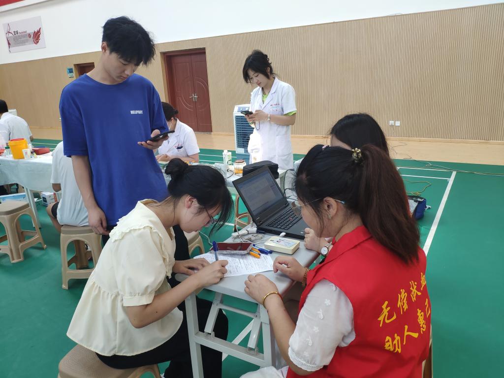 6月8日,由茅山校区党总支学生党支部、“林茅茅”志愿服务团联合发起的义务献血活动在茅山校区体艺中心顺利开展。本次活动以“青春献热血,挽臂显担当”为主题,校区近百名学生参与,总献血量达到25100毫升。
