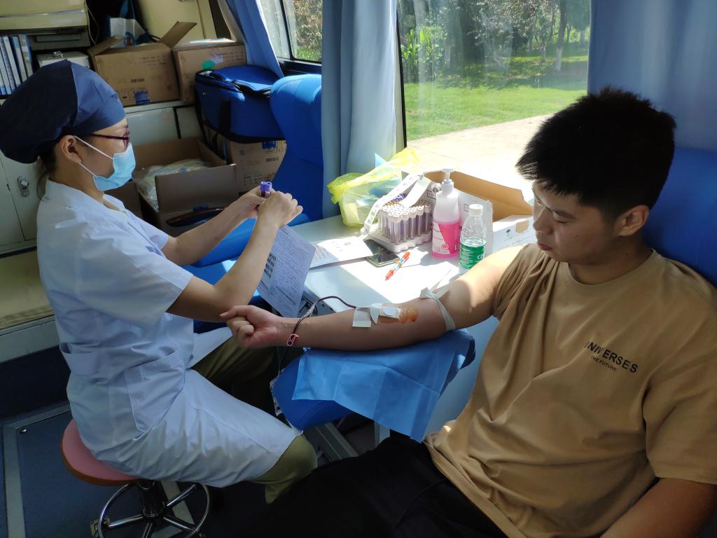 献血现场分为登记区、体检区、等候区、献血区、休息区等五大区域,校区“林茅茅”志愿服务团的志愿者为前来献血的同学们提供了热情服务和帮助,指引同学们依次进行信息登记、血液类型检验、静脉采血等环节。
