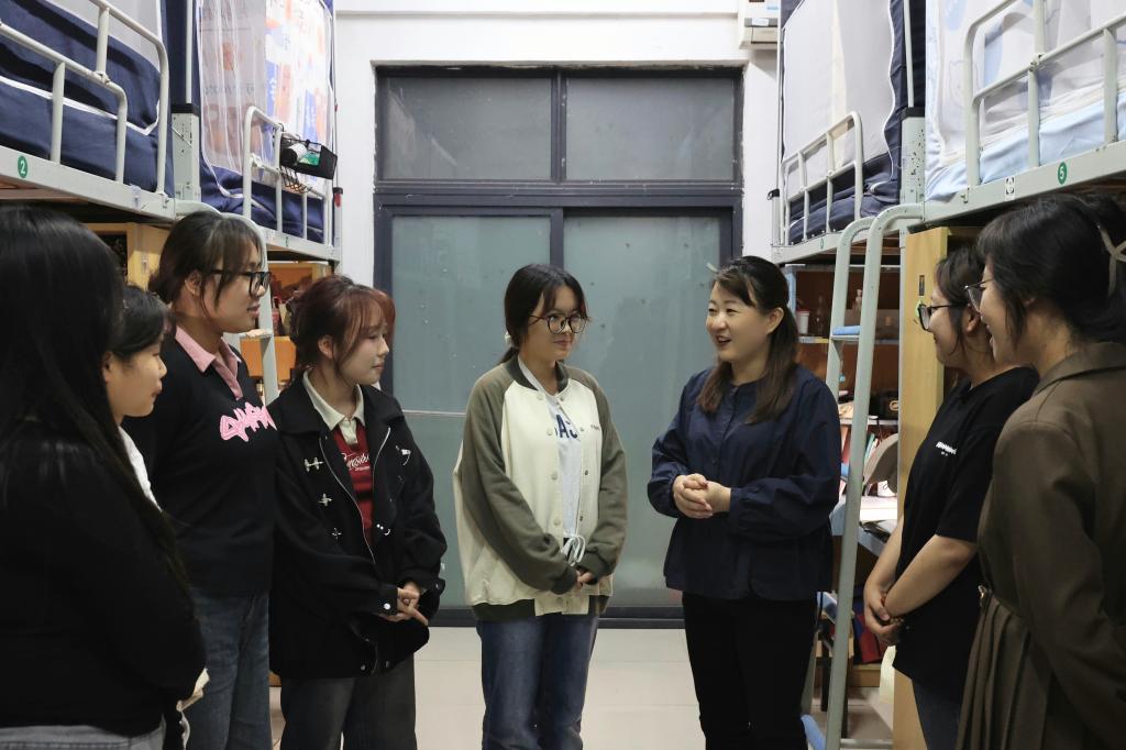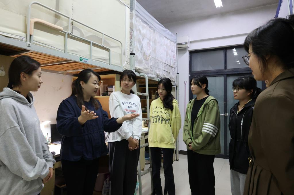 为更好地了解学生的学习、生活和思想动态,使同学们更快地适应校园环境,增加归属感,10月31日,茅山校区党总支负责人董慧,慧姐谈心屋相关成员和班主任深入学生宿舍进行走访,实地了解学生宿舍学习生活,传递校区的温暖与关怀。