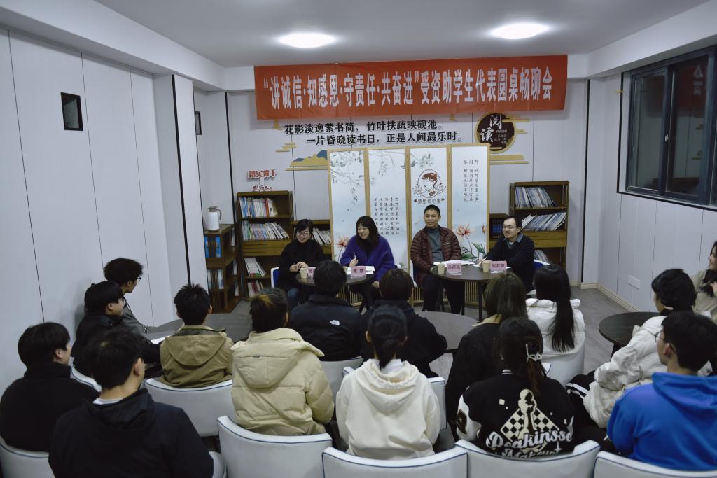 为帮助受资助学生切实解决生活和学习中存在的问题,激励同学们自立自强,11月17日,慧姐谈心屋举行“讲诚信·知感恩·守责任·共奋进”受资助学生代表圆桌畅聊会,茅山校区党总支负责人董慧,慧姐谈心屋相关成员、辅导员老师以及18名来自各专业的受资助学生代表参加了此次活动。