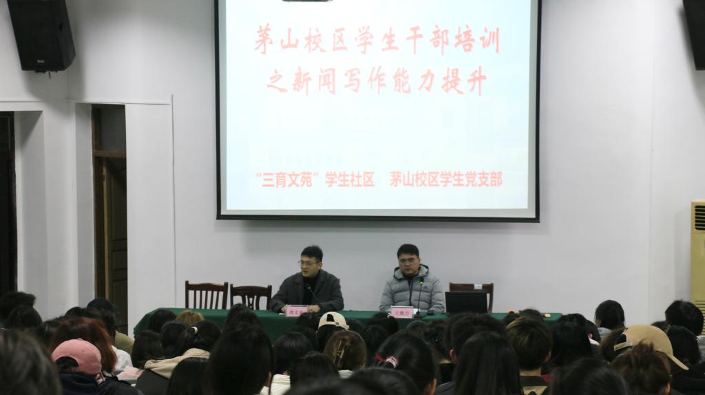 3月12日,茅山校区开展了“学生干部培训之新闻写作能力提升”专题讲座。讲座由句容市融媒体中心《强国发稿》工作室负责人王俊力主讲,校区学工办主任周文炎主持,近300名学生干部参加。