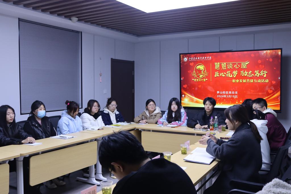 为引导学生做好学业规划,明确职业发展目标,3月19日,茅山校区党总支负责人、慧姐谈心屋负责人董慧走进“三育文苑”学生社区,与校区20位不同专业的同学面对面,零距离倾心交流,慧姐谈心屋成员和相关辅导员参加了互动活动。