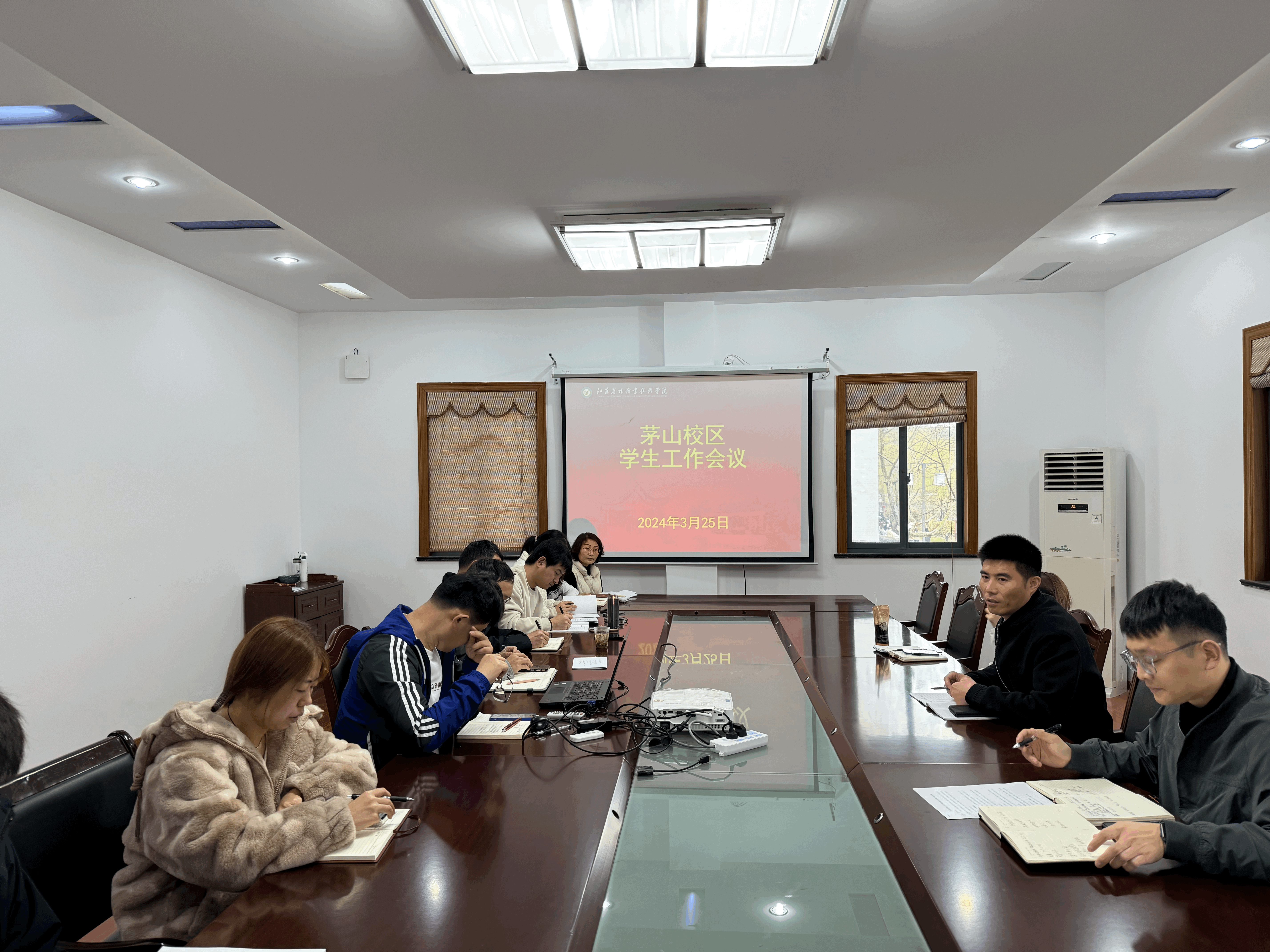 3月25日,茅山校区在行政楼二楼会议室召开学生工作会议,党总支副书记杨红进出席会议,全体辅导员、班主任参加了会议。