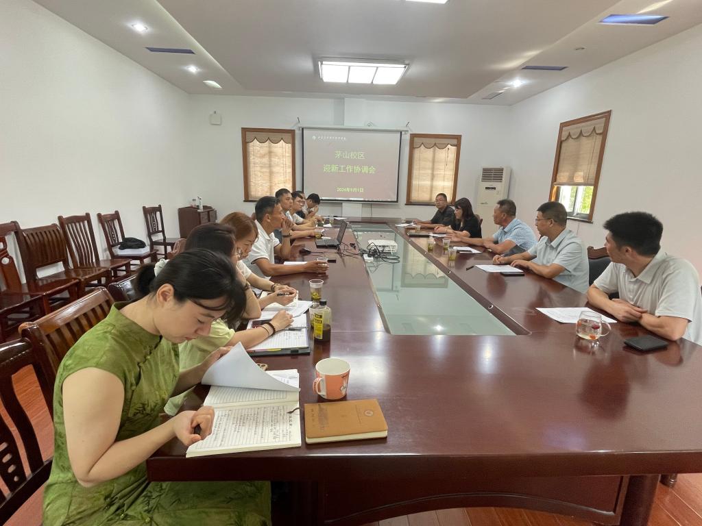 为全面细致地做好新生入学工作,9月1日上午,茅山校区牵头在行政楼会议室召开迎新工作协调会。学院安全保卫处处长汪国好、江苏茶博园主任史德林、食堂负责人等参加本次会议。会议由茅山校区党总支负责人董慧主持。