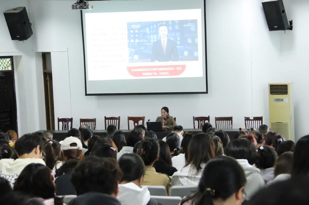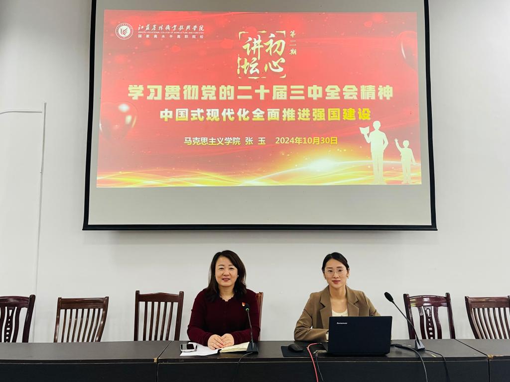 10月30日下午,茅山校区党总支在报告厅举办学习贯彻党的二十届三中全会精神专题宣讲会暨第二期初心讲坛。专题会邀请马克思主义学院张玉老师,以“以中国式现代化全面推进强国建设”为主题进行专题宣讲。茅山校区全体党员,学生代表300余人参加了宣讲会。