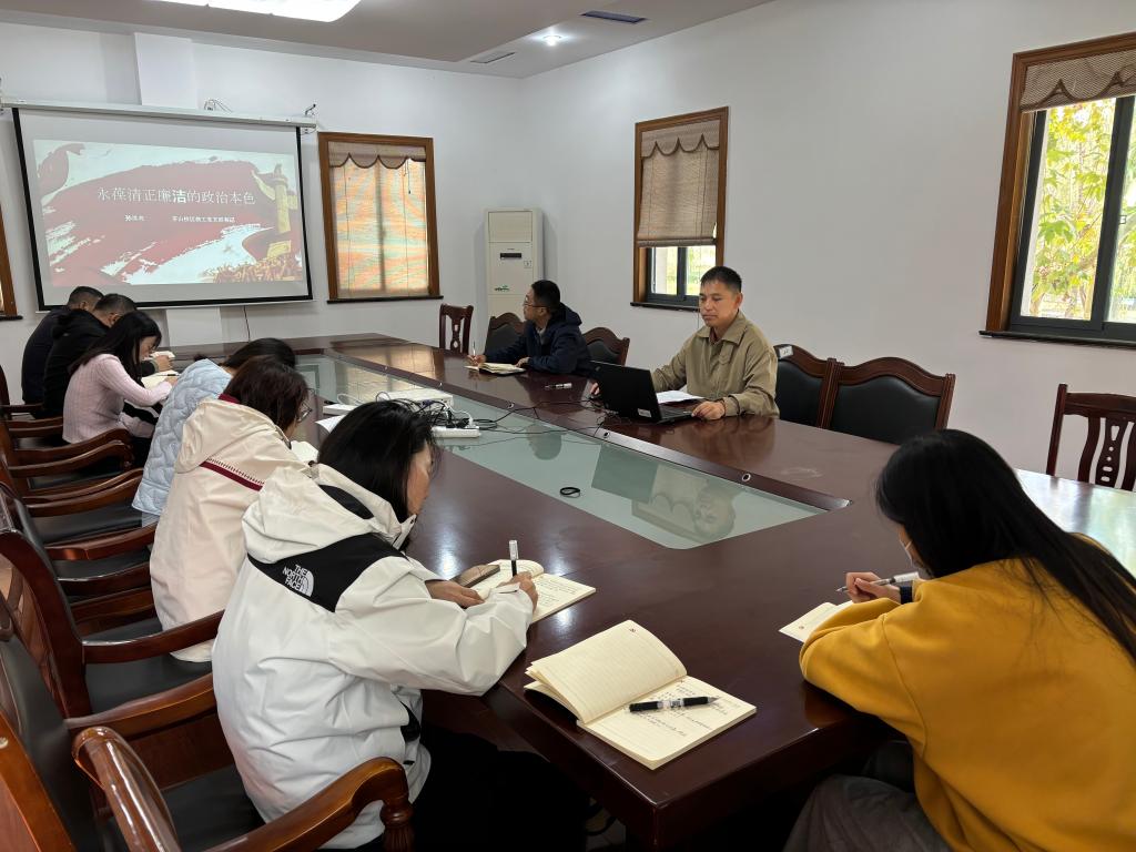 10月31日,茅山校区教工党支部书记孙洪亮同志在校区行政楼二楼会议室为全体党员上了一堂主题为《永葆清正廉洁的政治本色》的党课,党课主要从把“以人民为中心”内化为大脑软件、树立法治思维运用法治方式、始终严以用权、守住底线拒腐防变、坚持严以律己等5个方面深入的讲解和交流。孙洪亮最后强调,全体党员要清清白白做人、干干净净做事,做到克己奉公、以俭修身,永葆共产党人清正廉洁的政治本色。