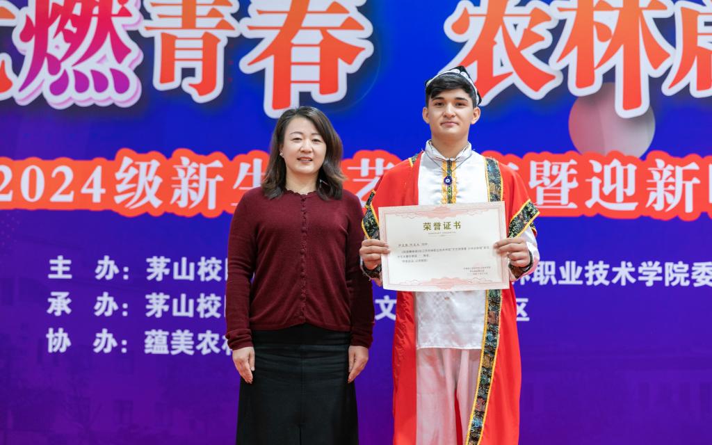 舞动青春风采,共唱农林乐章。校区的10组选手脱颖而出,在决赛的舞台各展所长,大放异彩。大赛在舞蹈《美丽中国》中绚丽开幕。《我怀念的》《山海》《雨天雨天》等歌曲类节目或深情、或激昂、或轻柔,触动着在场观众的心弦,让人沉醉其中;舞蹈《青丝》《民族舞串烧》《DRAMA》举手投足间尽显优雅、热情奔放里满是力量,彰显着青年人的热情与活力;器乐《大鱼》欢快活泼、热情洋溢,跳动的音符释放着青年人迸发的激情。蕴美农林社团的舞蹈队和王瑜、秦亚非为现场观众带来了舞蹈《SHEESH》以及歌曲《罗生门》。最终,伊克散·阿克木带来的新疆舞《民族舞串烧》获得大赛一等奖,尚子妍带来的舞蹈《青丝》、张艺玟的舞蹈《DRAMA》和黄张杰、张妍带来的歌曲《雨天雨天》获得大赛二等奖。