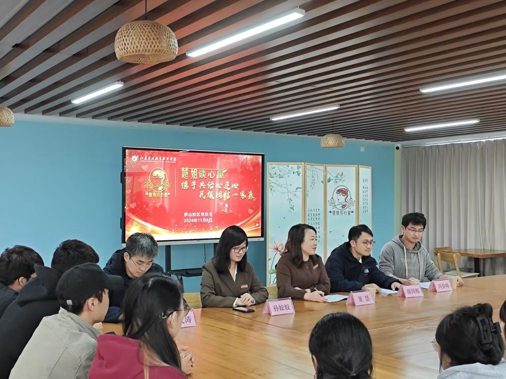 11月8日,慧姐谈心屋举行少数民族学生代表交流会,茅山校区党总支负责人董慧,慧姐谈心屋相关成员以及来自维吾尔族、藏族、哈萨克族等20余个不同专业的少数民族学生代表参加座谈会。