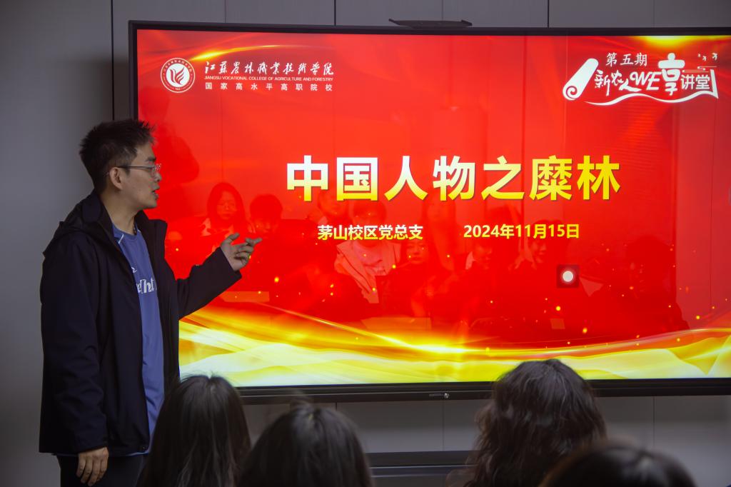11月15日下午,由茅山校区党总支主办,学生党支部、三育文苑学生社区承办的第五期新农人we享讲堂在2号公寓初心党团室举办。茅山校区辅导员戴文涛老师作为主讲人,为同学们带来了题为“中国人物之糜林”的专题讲座,校区30余名同学参加了讲座。
