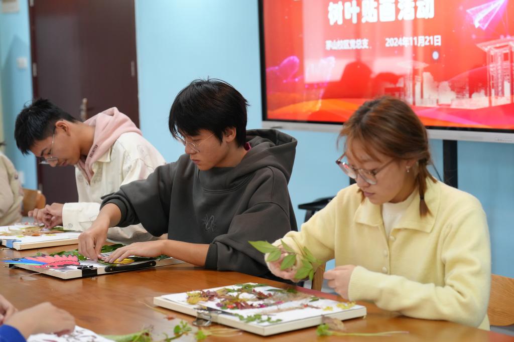 11月21日下午,由茅山校区党总支主办,学生党支部、三育文苑学生社区承办的新农人指尖课堂之“山河披锦绣 叶画绘使命”树叶贴画活动在新禾学习吧举办。