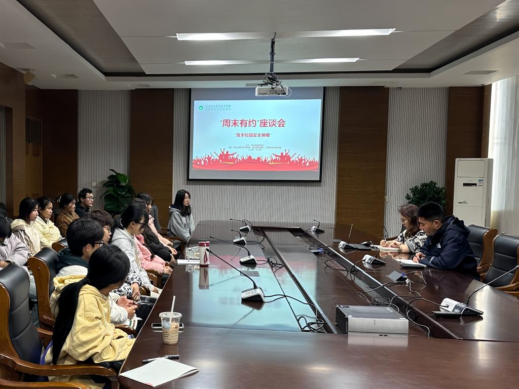 茅山校区致力于加强校区安全管理,为师生创造安全、和谐的学习和生活环境。本次“周末有约”座谈会旨在聚焦校园公共安全、宿舍安全等方面,听取了学生代表们的意见建议,并就大家关切的校园安全问题进行面对面沟通。