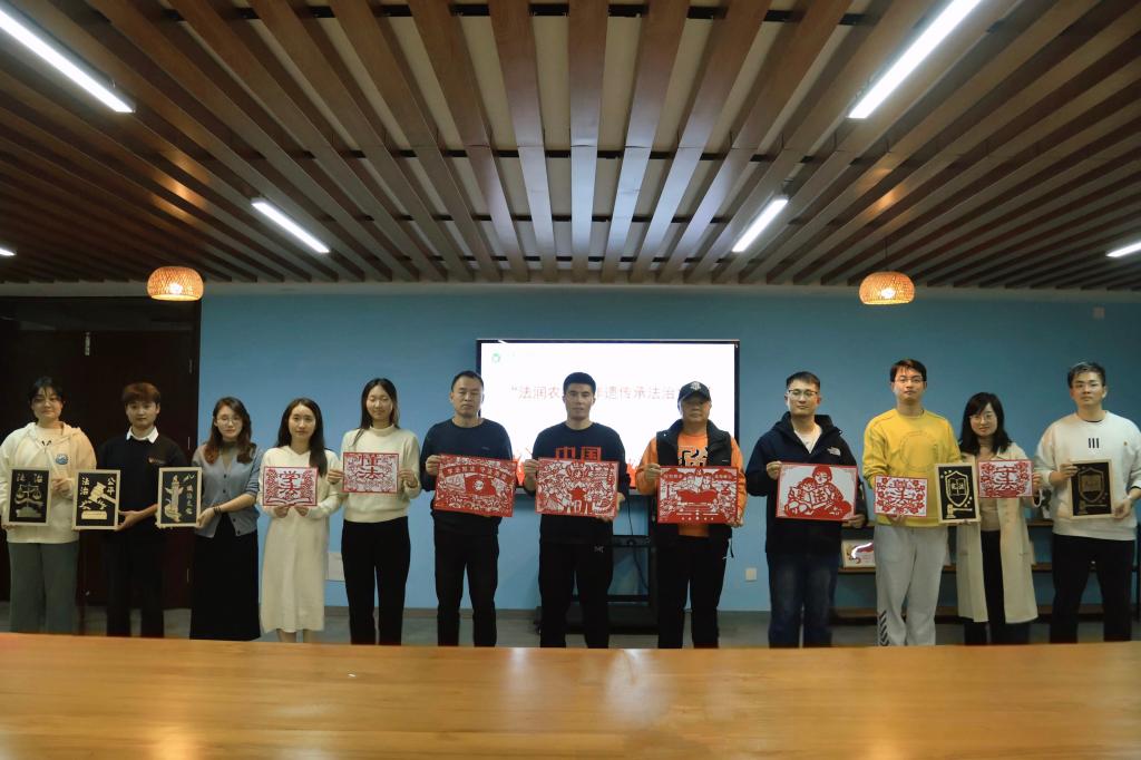 一张红纸折叠,一把剪刀裁剪,一幅幅生动逼真的法治剪纸浮现眼前;一片金箔,一段历史,穿越古今,法治传承非遗跃在画上......为进一步加强法治宣传教育与优秀传统文化的黏合效应,12月4日,茅山校区学生党支部开展“法润农林·非遗传承法治文化”活动。活动采用“非遗+普法”的宣传模式,深挖中华优秀传统文化底蕴,创新性地将法治理念融入剪纸、烧箔画等特色非遗技艺中。活动中,党员们激发创造力,或折纸、游剪,刀起刀落,纸屑飘飞,一张张形态各异、栩栩如生,寓意满满的法治剪纸雏形手中被赋予了鲜活的生命;熔金烁银、匠心独运,描摹—烧灼—着色—定型,亦真亦幻、亦明亦暗,一笔一划之间,让庄严的法槌和公正的符号在烁金流光中重获新生。一幅幅具有浓厚“潮味”的非遗法治文化作品,使抽象的“法”变得看得见、摸得着,以润物细无声的方式传递法治理念,实现非遗创作与法治宣传的有效结合。
