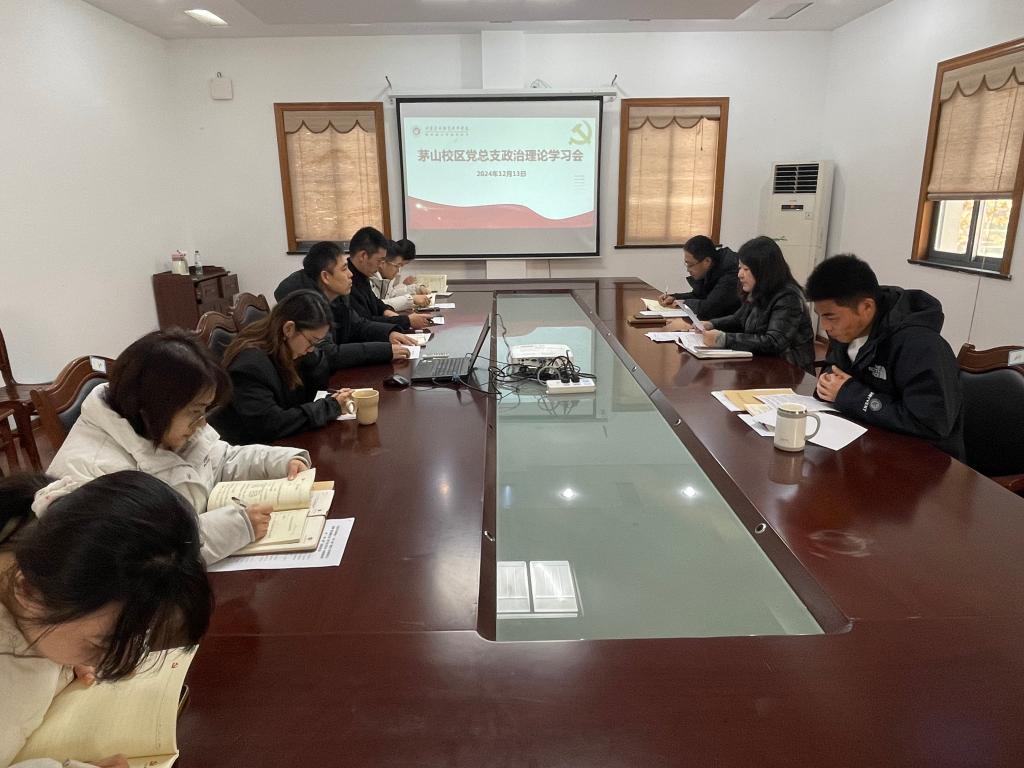 12月13日上午,茅山校区党总支于行政楼201召开了政治理论学习会,会议由校区党总支负责人董慧主持,校区党总支领导班子、各支部书记、委员、内设机构负责人参加了会议。
