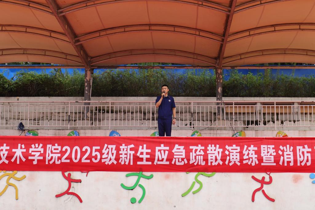 演练前,校区进行了周密部署,提前向新生讲解疏散路线、安全守则,对保安、宿管等工作人员进行分工。吴鹏结合校园宿舍电器过载、实验室易燃物处置不当等典型案例,生动讲解火险逃生技巧,细致拆解灭火器“提、拔、握、压” 四步操作法,强调“对准火焰根部、保持安全距离”等注意事项,提醒新生警惕日常潜在隐患。