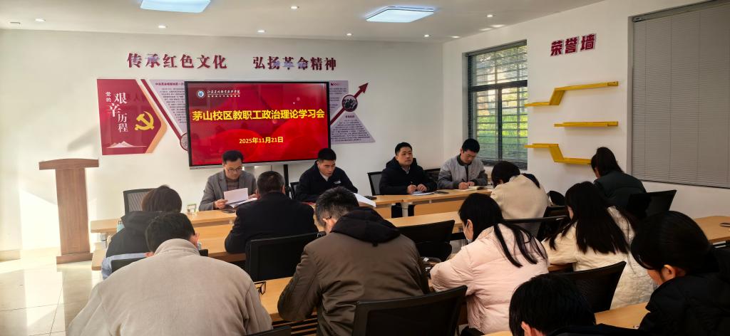 11月21日,茅山校区在“党员之家”召开全体教职工政治理论学习会议,旨在统一思想共识、明确工作方向、强化责任担当。会议由校区党总支负责人杨红进主持,全体教职工参与。