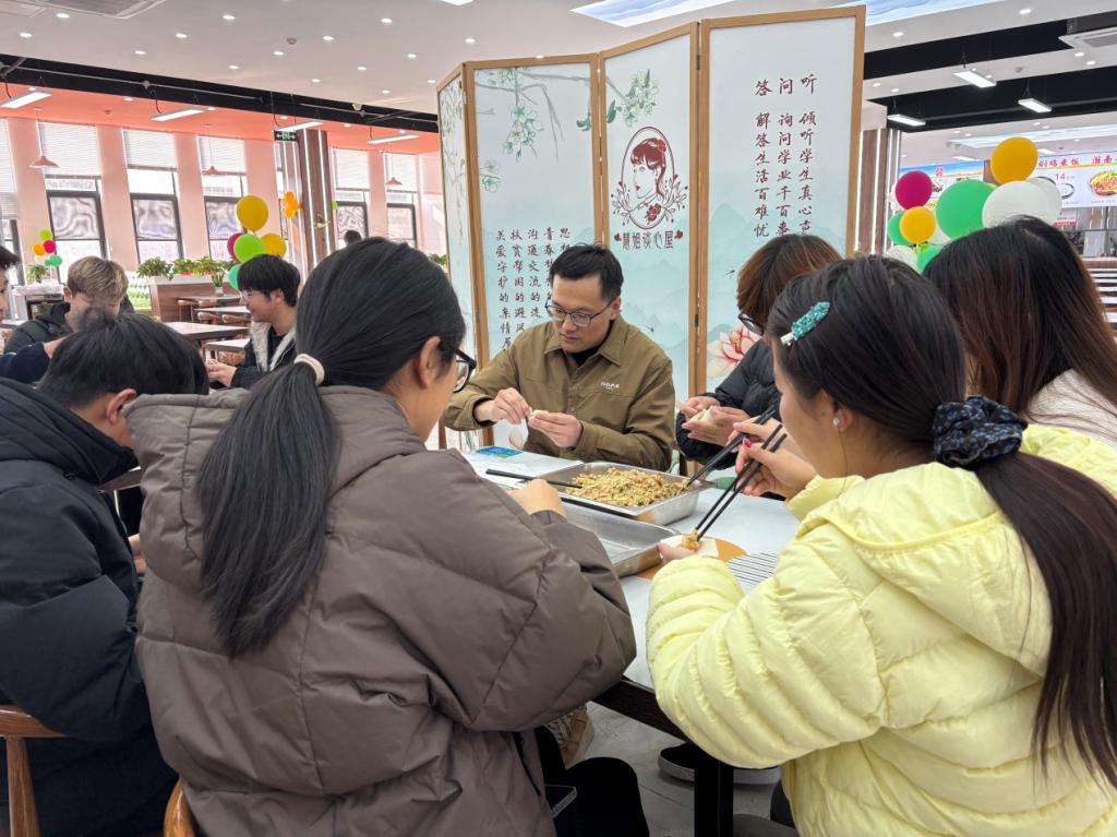 12月19日,茅山校区在耘园餐厅开展“冬至之约,以饺相伴”包饺子活动,活动由茅山校区党总支“慧姐谈心屋”承办。校区管委会副主任李国晓出席活动,教职工代表与受资助学生代表齐聚一堂,在动手协作中共话冬至、传递温暖。