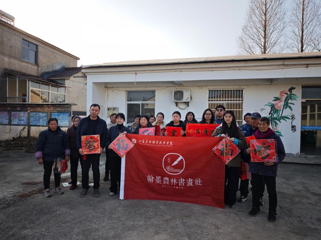1月14日,茅山校区师生前往句容市墓东村开展“墨香传福暖乡野 校社联动迎新春”义务送春联活动。活动由校区学生党支部、团委主办,翰墨农林书画社承办,共送出春联120副,为即将到来的新春佳节增添了浓厚的文化氛围与喜庆气息。