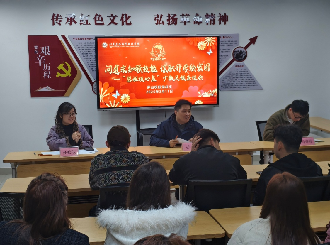 3月11日,茅山校区以“问道求知强技能,谋职升学绘宏图”为主题,举办少数民族学生交流会。活动由“慧姐谈心屋”辅导员工作室承办。校区党总支副书记孙鑫,辅导员冯登峰、孙姣姣与少数民族学生面对面交流,共话学业与发展。