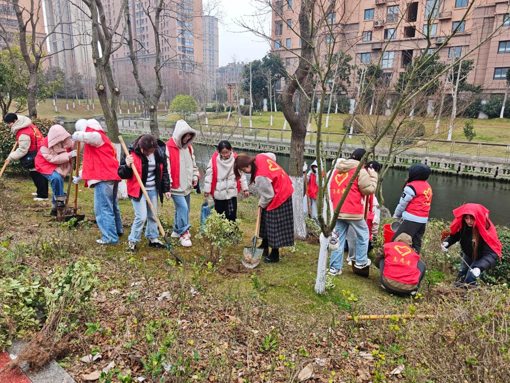 3月12日,由校区20名园艺技术专业学生组成的志愿服务团,前往句容寨里社区开展“护一抹青绿,暖一座城市”守护绿植公益行动,凭借专业知识助力社区生态建设。同学们运用所学专业知识,仔细勘察土壤条件,精准把控栽植深度,改良贫瘠土壤。他们规范地完成挖坑、扶苗、培土、浇水等工序,有效提升了树苗的栽植成活率。同学们专业的操作和认真的态度,赢得了社区居民的认可。