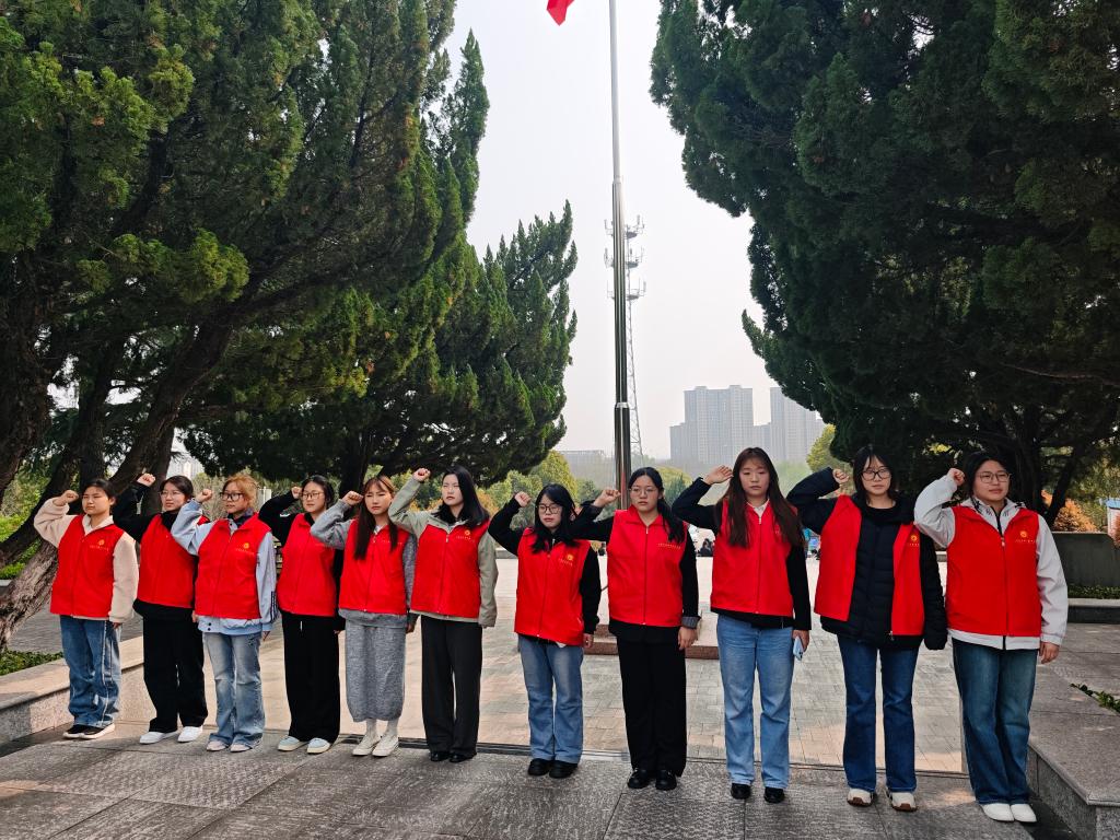 师生们怀着崇敬之心,认真擦拭烈士墓碑、清扫陵园步道、捡拾环境杂物,以实际行动守护英烈安息之所;大家驻足凝视碑文,深情追忆革命先烈浴血奋战、为国捐躯的英勇事迹,寄托对先辈的无限敬仰与深切哀思;师生依次向革命先烈敬献鲜花,集体肃立默哀,致以最崇高的敬意。在巍峨的革命烈士纪念碑前,全体团员高举右拳,庄严重温入团誓词,铿锵誓言响彻陵园,充分彰显新时代青年学子的坚定信念与责任担当。