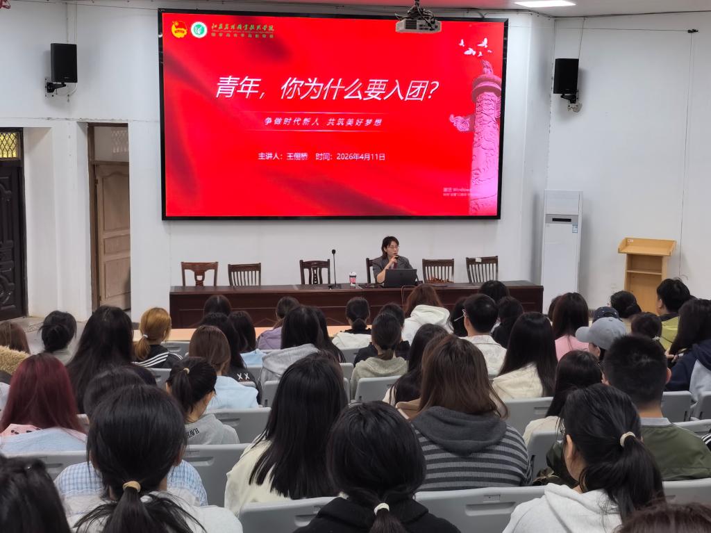 4月11日,茅山校区团委在校区报告厅举办“秾思享·入团启蒙”系列培训讲座。校区团委书记王俪桥以《青年——你为什么入团》为题,为125名入团积极分子带来一堂兼具思想深度与情感温度的信仰公开课。