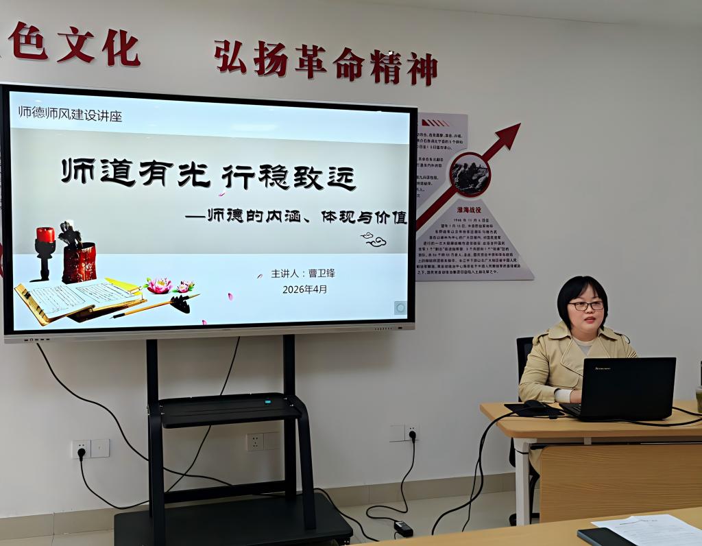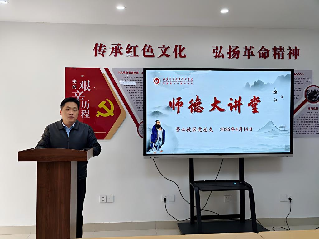 为持续深化师德师风建设,引导广大教师坚守育人初心、勇担育人使命,4月14日下午,茅山校区特邀基础部数学教师、2025年度学校师德标兵曹卫锋,开展师德师风专题讲座,校区全体教师参与学习。