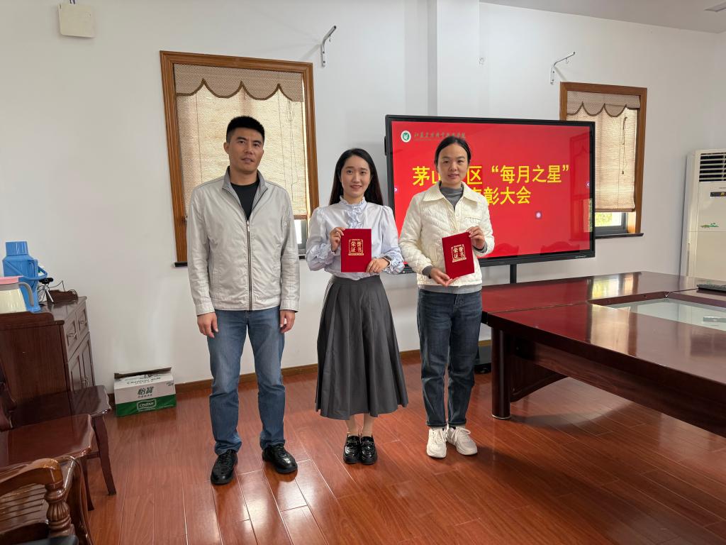 为表彰先进、激发干劲,茅山校区于4月22日在行政楼会议室举行2025年3月“每月之星”表彰大会。会议由校区党总支负责人杨红进主持。