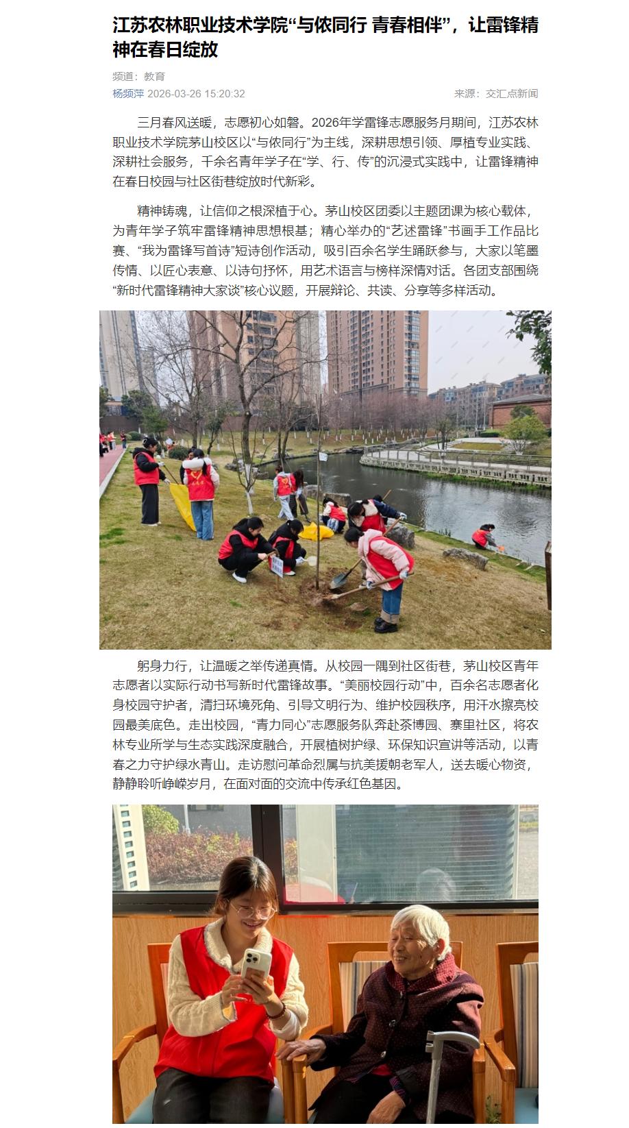 【交汇点】报道茅山校区学雷锋月“与侬同行”志愿服务系列活动